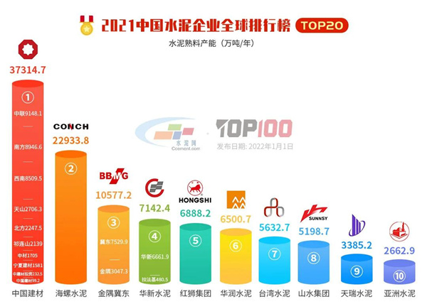 2022年元旦之際,“2021中國水泥熟料產(chǎn)能百強(qiáng)榜”如期發(fā)布,這是中國水泥網(wǎng)連續(xù)第18年發(fā)布該榜單。作為一份特別的“成年禮”,今年的榜單將更為清晰的為我們展現(xiàn)新時(shí)代背景下的水泥行業(yè)圖景。