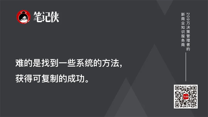 偶爾做成一件事并不難,有些時(shí)候僅僅是運(yùn)氣使然,難的是找到一些系統(tǒng)的方法,獲得可復(fù)制的成功。