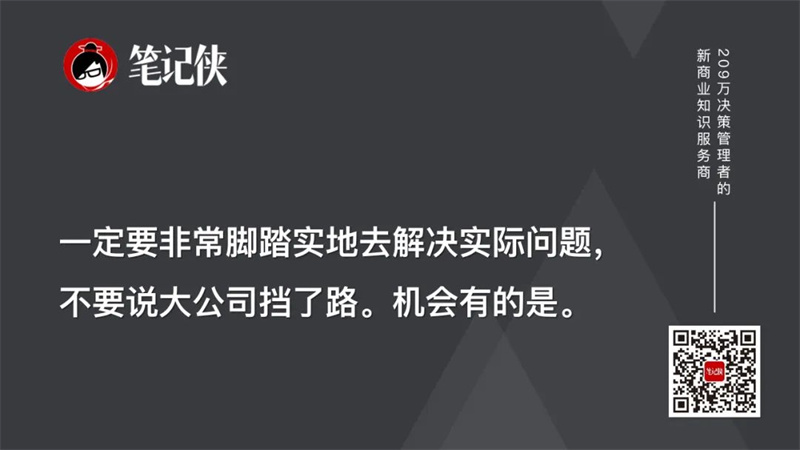 一定要非常腳踏實(shí)地去解決實(shí)際問(wèn)題,不要說(shuō)你們這些大公司擋了路。機(jī)會(huì)有的是。