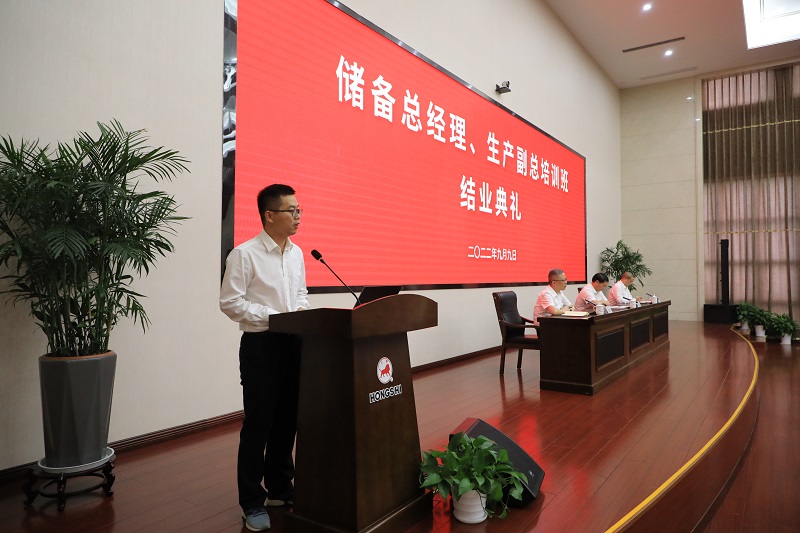 根據本次培訓考核安排,評選了優秀學員和最佳團隊。優秀學員代表杜松昭發表學習感言,感謝集團領導對儲備總經理、生產副總培訓班學員的關心,表示會盡快成長為一名合格的總經理/生產副總,做到會管理、會測算、會溝通、會協調;能謀劃、能預判、能解決、能爭取;向客戶要利潤,向車間要效益,向同行要協同,向政府要政策等;心懷感恩,帶領團隊完成集團各項任務,不辜負公司領導的厚望,做到力出一孔,利出一孔,為集團發展作出更大貢獻。
