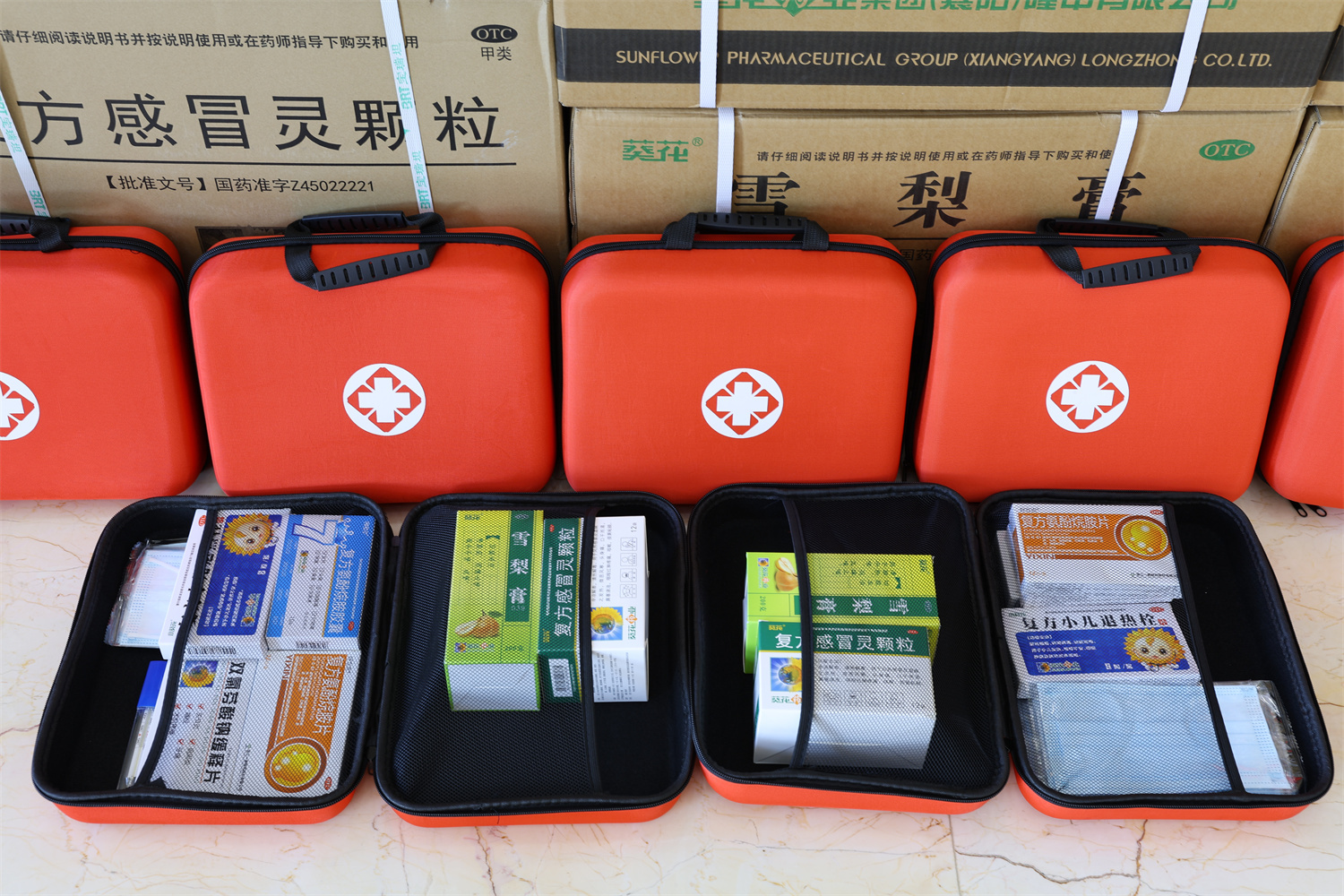 總部“防疫健康包”配備有復(fù)方氨酚烷胺膠囊、復(fù)方小兒退熱栓、雙氯芬酸鈉緩釋片、復(fù)方感冒靈顆粒、雪梨膏等5種防疫常備藥品及溫度計(jì)、抗原檢測(cè)試劑。
