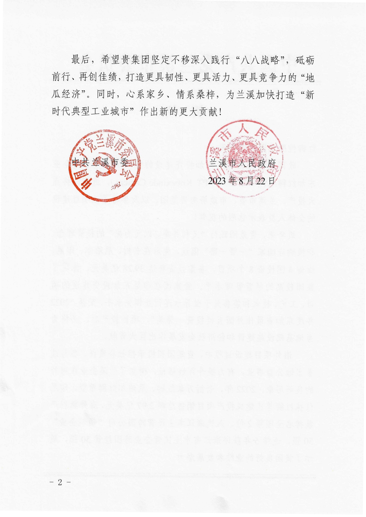 集團(tuán)總部所在地蘭溪市委市政府特地發(fā)來賀信,稱贊紅獅集團(tuán)“義利并舉、以義為先”的投資理念,積極承擔(dān)社會責(zé)任,參與改善當(dāng)?shù)毓媸聵I(yè),有力提升百姓福祉,樹立了蘭溪企業(yè)在海外的良好形象。同時鼓勵集團(tuán)堅定不移深入踐行“八八戰(zhàn)略”,打造更具韌性、更具活力、更具競爭力的“地瓜經(jīng)濟(jì)”,心系家鄉(xiāng)、情系桑梓,為蘭溪加快打造“新時代典型工業(yè)城市”作出新的更大貢獻(xiàn)!