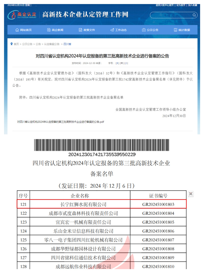 近年來(lái),長(zhǎng)寧紅獅始終專注于技術(shù)創(chuàng)新和研發(fā)投入,從資源環(huán)境保護(hù)等多方面自主創(chuàng)新。獲得實(shí)用新型專利授權(quán)27項(xiàng)、發(fā)明專利授權(quán)1項(xiàng),獲評(píng)國(guó)家級(jí)“高新技術(shù)企業(yè)”。高新技術(shù)企業(yè)認(rèn)定是對(duì)公司在科技領(lǐng)域創(chuàng)新能力的肯定,也是對(duì)公司技術(shù)研發(fā)實(shí)力、科技成果轉(zhuǎn)化能力及核心自主知識(shí)產(chǎn)權(quán)的認(rèn)可。這一認(rèn)定既提升了公司的市場(chǎng)競(jìng)爭(zhēng)力,還可享受三年5%進(jìn)項(xiàng)增值稅加計(jì)抵扣,為公司持續(xù)發(fā)展提供了政策支持。