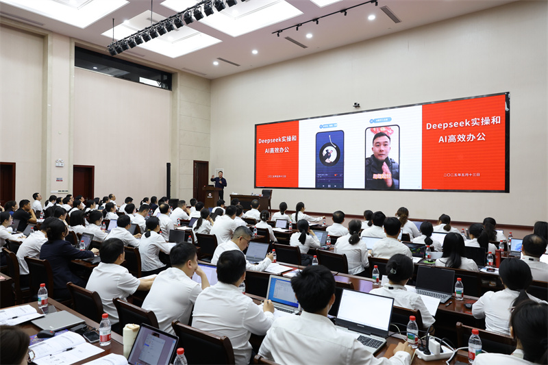 培訓現場學習氛圍熱烈,參訓人員全神貫注,積極互動。課后反饋顯示,超過95%的學員認為課程內容“極具實用性”,尤其是AI工具的操作技巧與場景化解決方案,為其日常工作提供了全新思路?!霸酒鸩菀环莨ぷ鞣桨钢辽傩枰?span lang="EN-US">1個小時,現在運用DeepSeek一分鐘就能生成,大幅提高工作效率”,一位學員訓后開心的分享道。