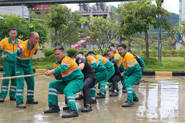 拔河比賽在濛濛細雨中拉開帷幕,現場氣氛緊張、激烈,隨著裁判一聲哨響,比賽現場立刻沸騰起來。各部門參賽隊員努力拼搏,無論是場上還是場下,氣氛都異常緊張,富有節奏的吶喊聲、加油聲,充斥在比賽現場,久久回蕩。尤其是在勝負難分的時刻,大家毫不退卻,咬緊牙關,堅持到底。現場拉拉隊的員工個個熱情高漲,吶喊助威給比賽增添了一抹亮色,每一聲吶喊都帶來一股力量!