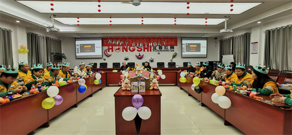 當"生日快樂"這首熟悉而美妙的旋律響起,會場燈光熄滅,點燃生日蠟燭,大家齊唱生日歌;壽星們微閉雙眼,默默地許下了2023年愿望:希望2023年宜春紅獅越來越好、員工家人身體健康、向錢看、抱大胖孫子、脫單、減肥成功等……
